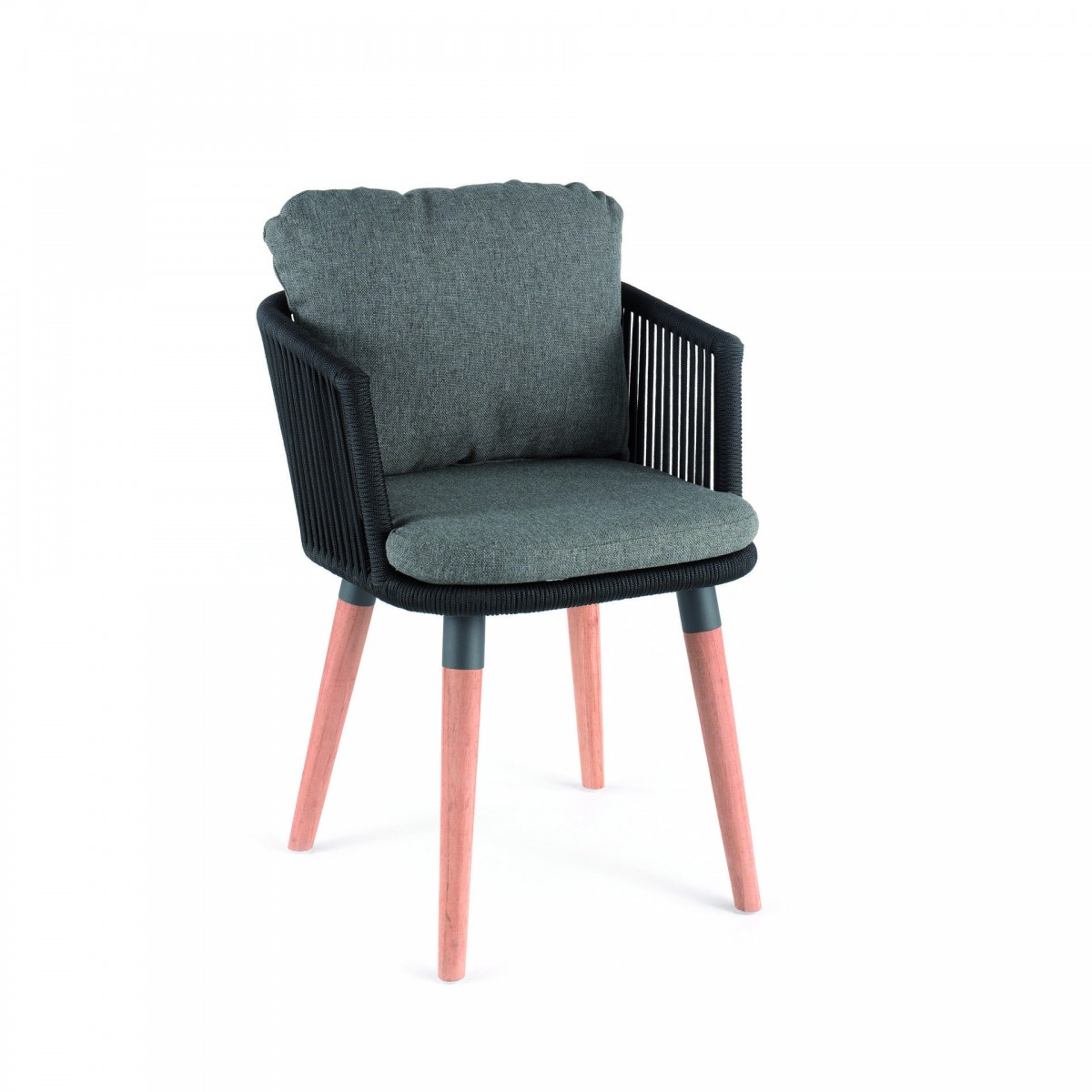Lahko aluminijasto ogrodjeNoge iz obdelane tikovineSedalni in naslonski del iz obstojnega teksilena in vrviOdporno proti UV-žarkom